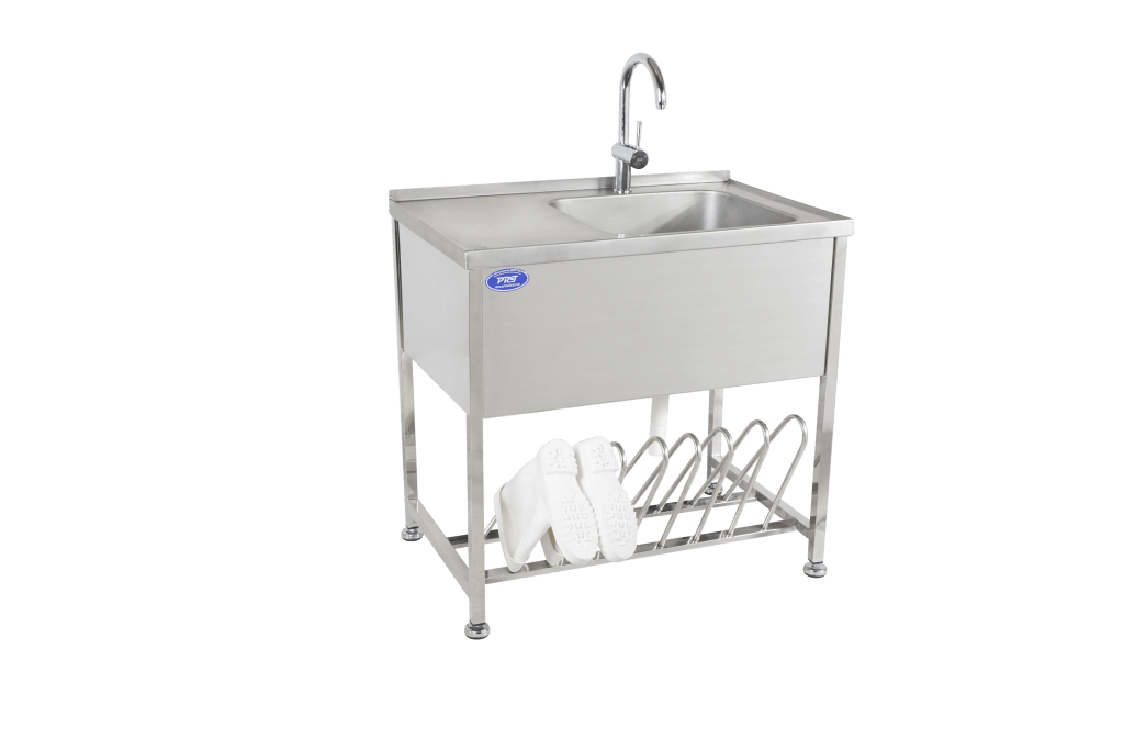 سینک تک لگن استیل با جای چکمه پیشگامان راه طب، طراحیشده برای بیمارستانها و صنایع دارویی با استیل ضدزنگ، شستشوی بهداشتی، دوام بالا و قابلیت سفارشیسازی. انتخابی مطمئن برای محیطهای حساس.